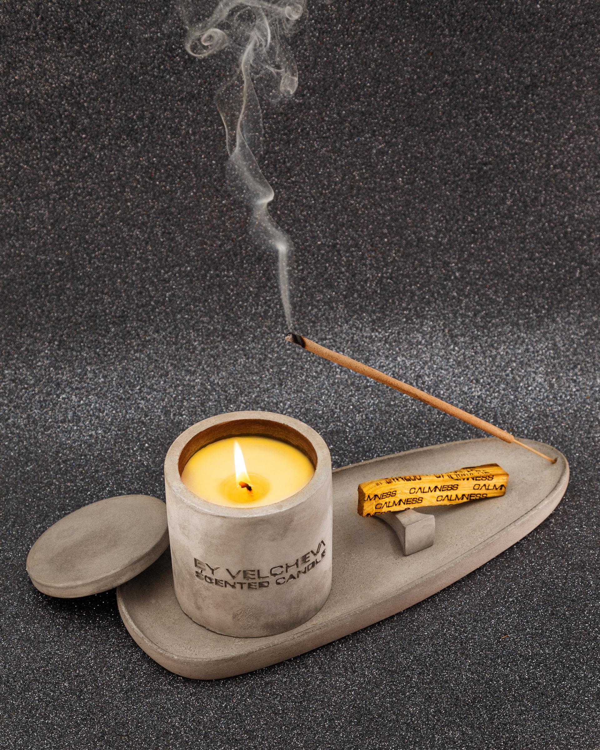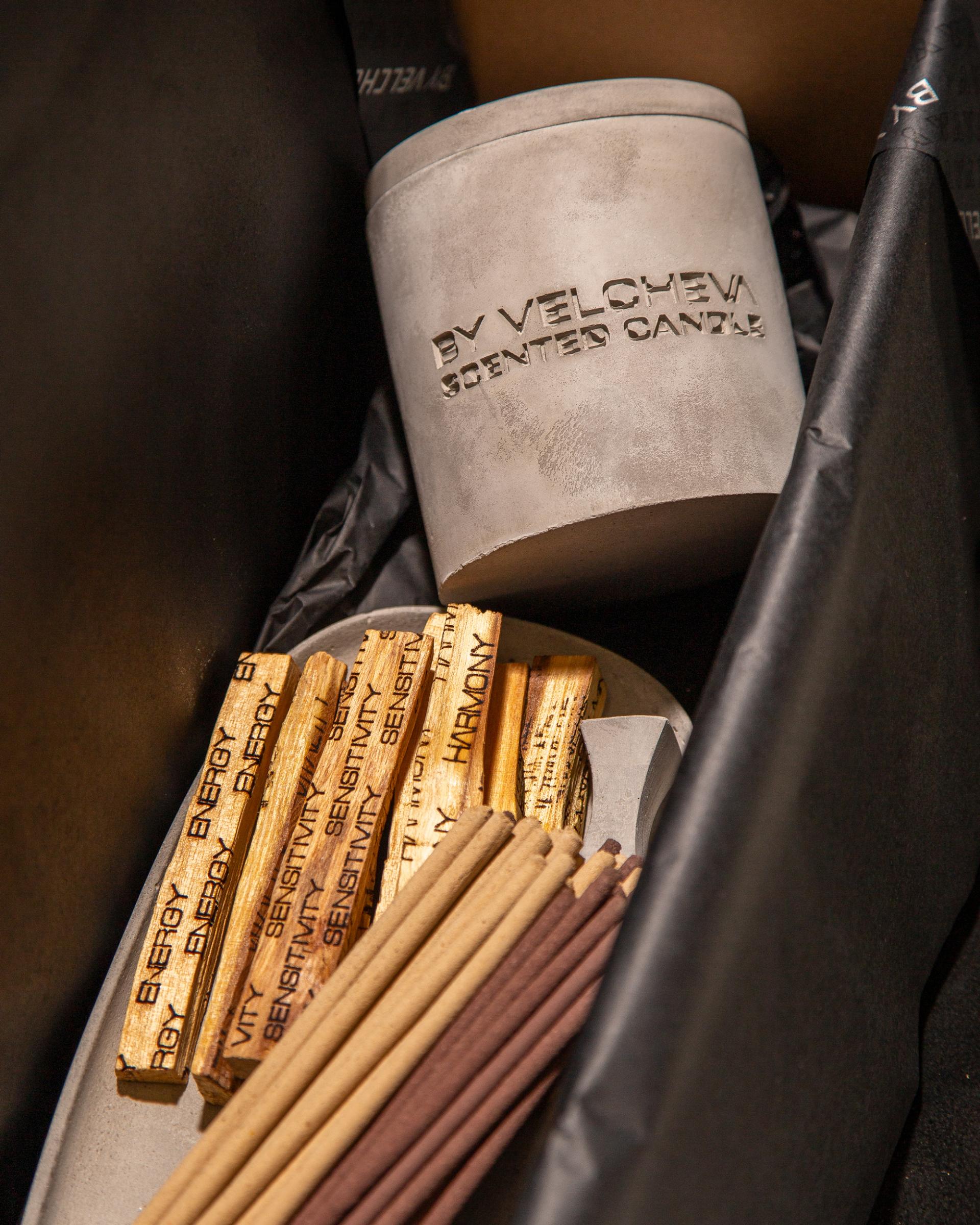 A szett tartalma: aromagyertya, Palo Santo pálcák (8 db), füstölőpálcák (40 db), gipsz gyertyatartó, gipsz Palo Santo pálcatartó.